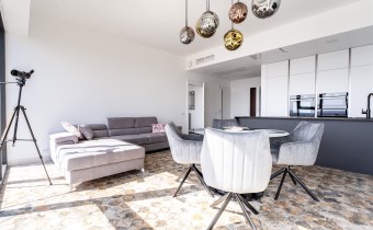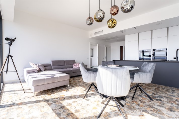 - salonu z otwartą kuchnią bardzo przestronny,