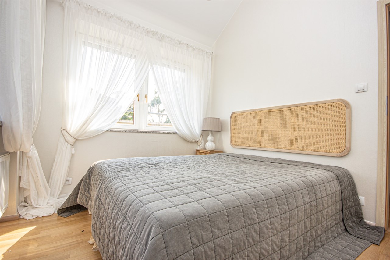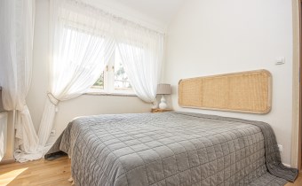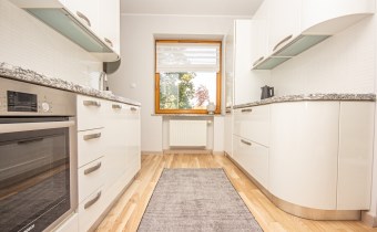 Zostało urządzone z najwyższej jakości materiałów z gustem i dbałością o detale – drewniane podłogi, wełniane dywany, kamień naturalny w kuchni i łazience, designerskie oświetlenie i dodatki.