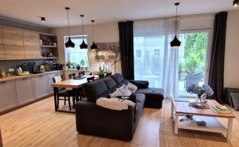 Na powierzchnie 92m2 znajdziemy 3 duże i ustawne pokoje, przestronny salon połączony z kuchnia, łazienkę razem z WC, osobno WC oraz korytarz. Powierzchnia ogródka to około 150 m2. Garaż bezpośrednio w bryle budynku. W całym mieszkaniu zamontowane zostały rolety antywłamaniowe.
